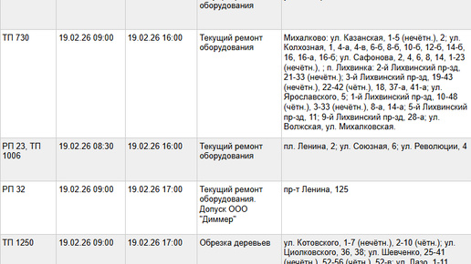 В четверг, 19 февраля, в Туле ожидается очередное плановое отключение электричества. Это коснётся 11 городских улиц и посёлков Михалково и 1-й Западный, как сообщается на сайте ТГЭС.