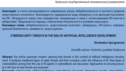 УГРОЗЫ КИБЕРБЕЗОПАСНОСТИ В ЭПОХУ РАЗВИТИЯ ИСКУССТВЕННОГО ИНТЕЛЛЕКТА