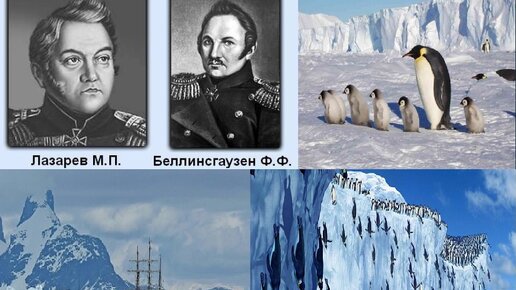 ОТКРЫТИЕ АНТАРКТИДЫ. Здравствуйте, читатель! С Вами Надежда. В январе много памятных дат. Давайте вспомним одну из них. Это открытие Антарктиды, которое совершили русские мореплаватели Ф. Ф. Беллинсгаузен и М. П. Лазарев на шлюпах "Восток" и "Мирный", пройдя вокруг Антарктиды на широтах от 60 до 70 градусов, и неопровержимо доказав существование земли в районе Южного полюса. В конце декабря 1819 года шлюпы подошли к острову Южная Георгия, находящемуся в южной части Атлантического океана. Корабли медленно двигались вперёд, осторожно лавируя среди плавающих льдов...