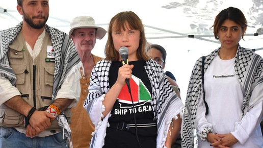 6 октября 2025 г. Известная уже во всем мире шведская молодая Экоактивистка Грета Тумберг ещё в сентябре месяце организовала ФЛОТИЛИЮ С ГУМАНИТАРНОЙ ПОМОЩЬЮ В ГАЗУ, что находится на земле Палестины и куда вторглись израильские военные ещё позапрошлой осенью... Тумберг в копании ещё 11 товарищей -соратников выплыла на яхте "Мадлин" из Италии, а на флагштоке яхты развевался Палестинский флаг. Участники морского перехода по Средиземному морю заявили всем мировым СМИ, что везут гуманитарку в сектор Газа, для бедствующих там гражданских жителей Палестины...