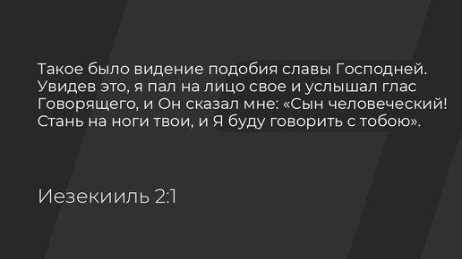 “И Он сказал мне: «Сын человеческий! Стань на ноги твои, и Я буду говорить с тобою». И когда Он говорил мне, вошёл в меня дух и поставил меня на ноги мои, и я слышал Говорящего мне. И Он сказал мне: «Сын человеческий! Я посылаю тебя к сынам Израилевым, к людям непокорным, которые возмутились против Меня. Они и отцы их — изменники предо Мною до сего самого дня. И эти сыны — с огрубелым лицом и с жестоким сердцем; к ним Я посылаю тебя, и ты скажешь им: "Так говорит Господь Бог!" Будут они слушать или не будут, ибо они мятежный дом, но пусть знают, что был пророк среди них...