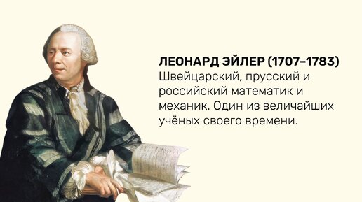 Великого математика Леонарда Эйлера сравнивают с Пушкиным в литературе и Моцартом в музыке. За всю жизнь учёный написал более 850 работ по математике, механике, физике и даже теории музыки. Эйлер понимал глубокую взаимосвязь разных разделов математики — благодаря ему разрозненные составляющие этой науки сложились в единую систему. На уроках геометрии в школе проходят круги Эйлера, которые иллюстрируют множество и подмножества. Его именем называются формулы, постоянная, углы, интегралы, уравнение...