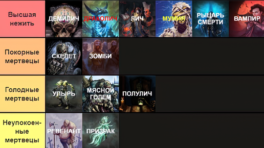 Текстовая версия: Что бы лучшее понять все многообразия нежити я подготовил такую замечательную таблицу: