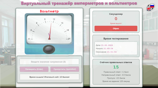 52. Новая виртуальная лабораторная работа по физике «Виртуальный тренажёр амперметров и вольтметров»