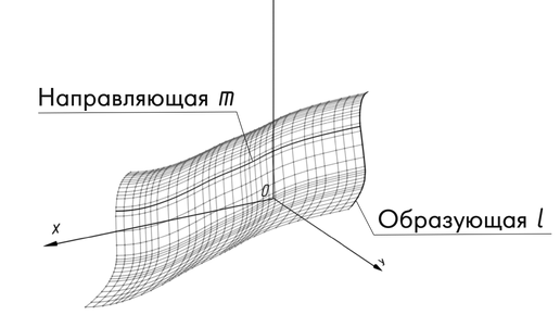 Важное место в начертательной геометрии занимают поверхности. Существует несколько способов задания поверхности: аналитический, графический, кинематический. В начертательной геометрии чаще поверхность задают кинематически – как множество всех положений перемещающейся по определенному закону линии в пространстве. Эта линия называется образующей – l. Как правило, она скользит по некоторой неподвижной линии, называемой направляющей m. Совокупность образующих, и направляющих, создают каркас поверхности (см...