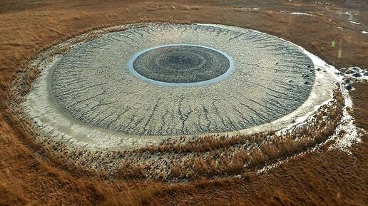 Грязевой вулкан Пугачевский на острове Сахалин сверху выглядит как гигантский человеческий глаз.