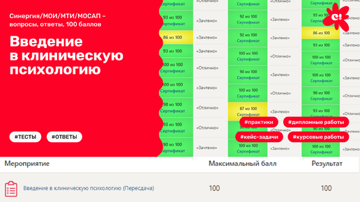 Введение в клиническую психологию (Синергия/МОИ/МТИ/МОСАП – вопросы, ответы, 100 баллов)