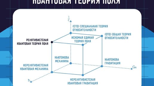 Исходя из положения точки на кубе и названия релятивистской квантовой механики (РКМ) — это квантовая механика и СТО в одном. Понятно, что простым такой раздел быть не может. Поэтому для его описания учёные предлагают разные математические аппараты, создавая разновидности РКМ. Самая популярная из них — квантовая теория поля. Основными объектами квантовой теории поля являются квантовые поля, которые распространяются по Вселенной и порождают все фундаментальные явления в физическом мире. Например,...