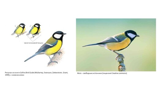 Сидела и думала, что же нарисовать такого, чтобы было легко и в тоже время актуально. В голову пришла идея - синицу хочу. Прежде чем искать референс, я поглядела, какие вообще бывают синицы. Их, как выяснилось, около 26 видов. Привычная для Сибири называется Большая синица. Вот ее я и решила нарисовать. На фото я поместила референс, с которого рисовала синичку. Я не стала убирать круги и прочее, чтобы вам было наглядно и понятно. Мелкие круги одинаковые по диаметру, а тот большой круг = две мелких окружности...