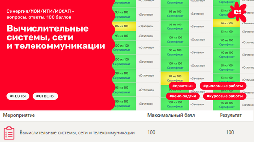 Вычислительные системы, сети и телекоммуникации (Синергия/МОИ/МТИ/МОСАП – вопросы, ответы, 100 баллов)