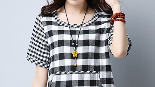 Простая летняя выкройка платья с коротким рукавом и карманом "Кенгуру"