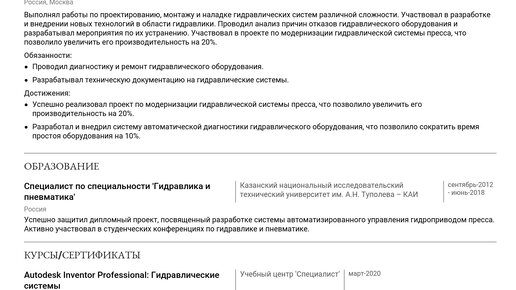 Пример резюме специалиста по гидравлике 2025 - Как составить
