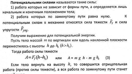 Пояснения к тексту Обращаю внимание на гравитационное поле Земли (поле силы тяжести) Сила тяжести является консервативной силой, поэтому для гравитационного поля Земли можно ввести понятие "потенциальная энергия". Физический смысл имеет не сама потенциальная энергия, а её изменение, которое позволяет найти работу силы тяжести, совершённую над телом: По такой же формуле находится работа, совершённая гирей настенных гиревых часов при опускании гири. Обычно говорим, что тело, поднятое над землёй,...