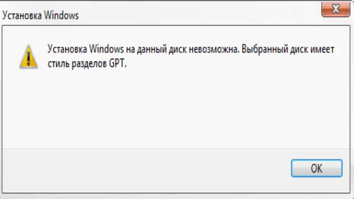 Установка Windows на данный диск невозможна. Выбранный диск имеет стиль разделов GPT