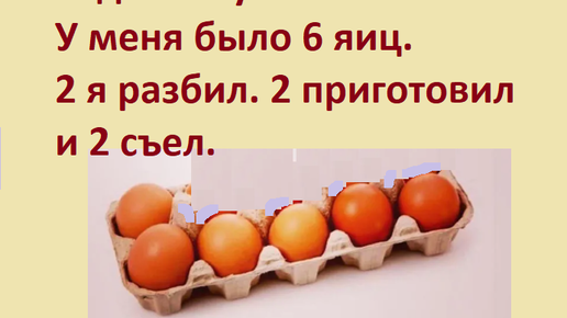 Задача-шутка про яйца. Сколько яиц осталось? А было 6 яиц