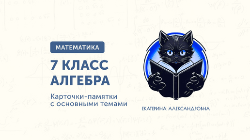 Я собрала в карточках теорию по основным темам алгебры за курс 7-го класса. Такие темы, как "Алгебраические дроби" и "Сложение многочленов", например, в карточках не представлены, так как темы подразумевают больше практическую работу🤷🏻♀️