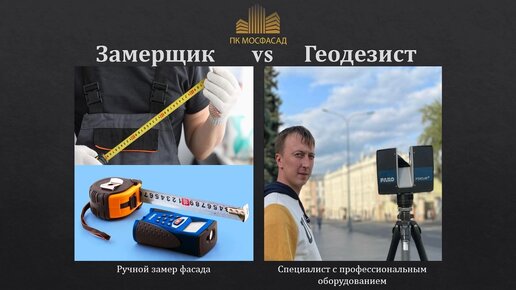 Замерщик против геодезиста или что будет с фасадом после ручного замера?    Многие люди привыкли работать по старинке. Мы постоянно слышим от заказчиков: "Пришлите замерщика, пусть сам снимет все размеры и сформирует заявку" или "Отправляйте замерщика, он снимет размеры и сделаете нам проект".  Увы, дорогие друзья, это так не работает ⛔ Ни один замерщик даже с многолетним опытом не сможет точно снять размеры.  🌑Результаты ручного замера: 📐Неточные размеры. 📐Отсутствие данных по отклонениям от плоскости...