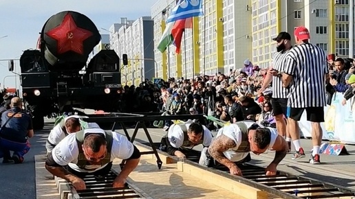 Сегодня в башкирском городе Стерлитамаке команда «Самого сильного человека в России» Эльбруса Нигматуллина установила мировой рекорд по буксировке ракетного комплекса «Тополь-М». Его вес превышает 40 тонн. Военную установку в несколько подходов тягали четверо стронгменов: Денис Вагапов, Раиль Бикмаев, Айдар Байчурин и Руслан Садыков. Рекорд зарегистрировал президент Федерации «Уралстронг -Силачи Руси» Дмитрий Кононец...