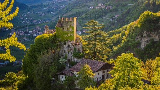 На всём Винном пути голова кружится не столько от выпитого вина, сколько от количества замков. Как правило, они находятся высоко в горах к тому же по обе стороны пути. Приходится очень активно крутить головой. До умопомрачения. На каждой макушке по церквушке - это всё о нём, о Южном Тироле. Тирольское графство имело не абы какое влияние в северной части Италии и умудрилось сохранить свои позиции вплоть до 1919 года. Фундамент такой стойкости и прочности был заложен в 12-13 веках вместе с многочисленными замками...