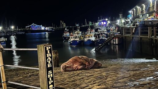 Накануне Нового года, в милый городок Скарборо, графства Норт-Йоркшир прибыл грузный усталый путник, умиливший город. Неожиданный гость (по словам специалистов по дикой природе, это первый известный визит моржа на территорию Йоркшира, северной Англии) сделал остановку в городском порту, завалившись дрыхнуть под изумление городской публики. Похожего моржа уже замечали месяц ранее несколько южнее, в графстве Гемпшир, а до этого и вовсе во Франции и Нидерландах. Судя по всему, Тор (как успели окрестить его энтузиасты) что называется, с баюлами едет до дому до хаты, в Арктику...