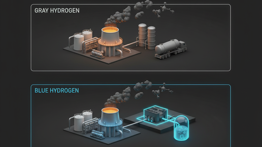 Сегодня большая часть водорода в мире производится старым добрым способом - паровым риформингом метана (природного газа). По сути это три этапа: Плюсы: Минус один, но жирный: Где используется: Голубой - это тот же серый, но с попыткой быть приличным. Идея простая: В теории: На практике: Голубой водород сейчас продвигают как компромисс: инфраструктура почти та же, углеродный след ниже. Но это всё равно переходное решение, а не финальная точка. Тут всё честно и просто по химии: Ключевой момент: