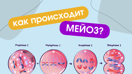 Ну что, продолжим говорить на тему цитологии? Сегодня разберём, как происходит процесс мейоза в клетке: из каких фаз состоит и в чём его биологическое значение. Мейоз, или редукционное деление, – это непрямое деление клеток, в результате которого число хромосом в них уменьшается вдвое. Другими словами, это деление, в процессе которого из одной диплоидной (2n) клетки получаются 4 гаплоидные (n) клетки. Именно поэтому мейоз называют «редукционным делением» – ведь у дочерних клеток наблюдается редукция (то есть уменьшение) числа хромосом с 2n до n...