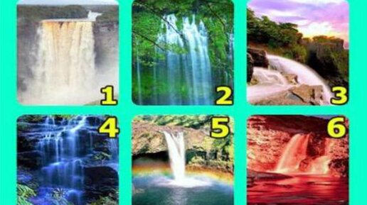 Можно бесконечно наблюдать за потоками воды и за непрекращающимися внутренними переменами. Возможно, пора покончить с привычкой всем угождать или исполнять роль жилетки, принимая чужие проблемы так же близко к сердцу, как собственные? А может быть перестать вкалывать как проклятый и уделить больше времени себе? Перед вами проективный тест, результаты которого подскажут вам, какие коррективы желательно внести в ваш образ жизни. Просто выберите понравившееся изображение водопада и смотрите толкование...
