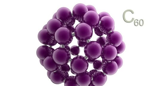 Фуллерены С60 это молекулы из шестидесяти атомов углерода, имеющие сферическую форму, похожую на футбольный мяч. В природе фуллерены содержатся в шунгите и морском воздухе. Фуллерен, в отличие от известных ранее форм углерода, растворим в органических растворителях (бензол, гексан, сероуглерод). В воде образует гидратированную форму, придавая ей красивый фиолетовый оттенок. Чем выше концентрация Фуллеренов, тем интенсивнее фиолетовая окраска. Из растворов и гидратов фуллерен легко кристаллизуется в виде мелких тёмно-коричневых и черных И кристаллов, похожих на хлопья сажи...