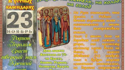 23 ноября - Приметы, обычаи и ритуалы, традиции и поверья дня. Все праздники дня во всех календарях.