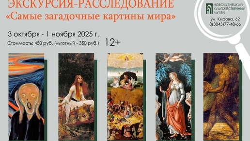 В Новокузнецком художественном музее открылась выставка «От Босха до Мунка. Самые загадочные картины мира». Об этом рассказали в администрации города. В экспозиции - более 70 шедевров мирового искусства, созданных в период с XV по XXI век: от Иеронима Босха и Питера Брейгеля до Боттичелли, Гойи, Леонардо да Винчи и Эдварда Мунка. «Все работы выполнены в формате жикле - высокоточной репродукции на натуральном холсте, позволяющей рассмотреть каждую трещинку, мазок кисти и игру света так, будто перед вами оригинал», - отметили в мэрии...