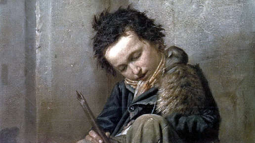 В 1862 году Василий Перов получил большую золотую медаль Академии художеств и право выезда за границу за счёт государства для обучения. Тогда он поехал в Германию, а затем в Париж, где провёл больше года. Художник часто бродил по улицам, изучая людей, их нравы и обычаи. Особенно его интересовали персонажи улиц и площадей: торговцы, шарманщики, бродячие артисты и т. д. Во время одной из таких прогулок Перов увидел мальчика с флейтой и сурком. Ребёнок выбился из сил и заснул прямо на парижской мостовой...