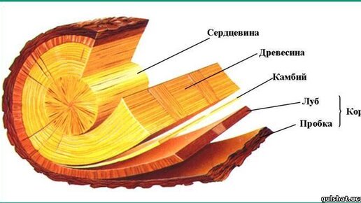Внутреннее строение стебля дерева.