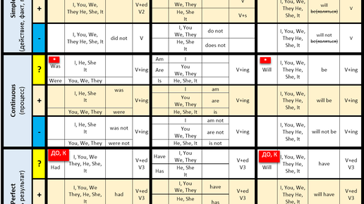 ПОЛНАЯ ТАБЛИЦА АНГЛИЙСКИХ ВРЕМЕН. Все времена в английском языке с примерами и переводом