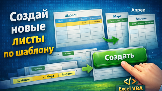 Создай новые листы по шаблону одной кнопкой — VBA, который убирает рутину и хаос в Excel. Как автоматически создавать новые листы по шаблону в Excel с помощью VBA. Готовый макрос, разбор, ошибки, сценарии и настройка под свою работу. Есть в Excel одна рутина, которая выглядит безобидно, пока не начинаешь повторять её изо дня в день. Нужно создать новый лист. Потом ещё один. Потом ещё пять. Потом открыть шаблон, скопировать лист, переименовать его, проверить, не съехали ли форматы, не потерялись ли формулы, не остались ли старые даты, не затёрся ли заголовок...