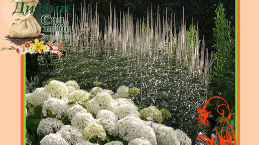 ВЕРТИКАЛИ Растения, имеющие соцветия в виде колоса, двойного колоса, початка, простой, двойной, тройной кисти. ---- Клопогоны, вероники, вероникаструмы, вербейник точечный, дербенники, наперстянки, кипрей, вейники, просо, дельфиниумы, акониты, лаванда, люпины, шалфей, горцы, лиатрис, физостегия, стахис, коровяк, кровохлебка, бузульник Пржевальского. ---------------------------------------------------------------------------------------------- ЗОНТИКИ Растения с соцветиями зонтик, простой и сложный щиток...