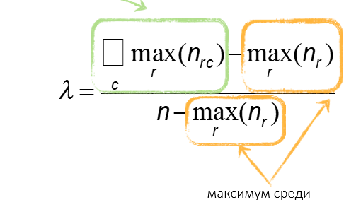 Меры силы связи между переменными Тест χ2 показывает только значимость взаимосвязи между переменными, но он никак не характеризует силу этой взаимосвязи. Простое доказательство: если удвоить все числа в таблице, то и значение χ2 удвоится. Меры силы взаимосвязи: — Фи-коэффициент (φ) — Коэффициент сопряженности признаков (C) — Коэффициент Крамера (V) — Коэффициент лямбда (λ) Фи-коэффициент Чем выше φ, тем сильнее взаимосвязь между переменными. Значения больше 0,30 считаются существенными. Проблемы:...