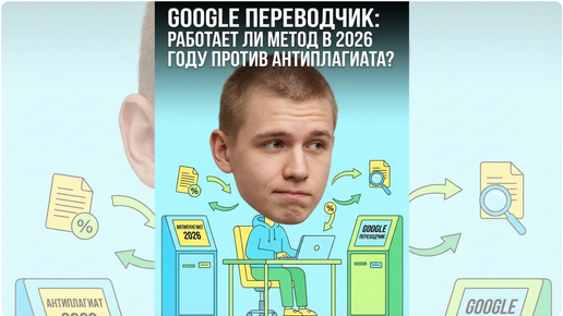 Сдаешь курсовую через 2 дня, а уникальность показывает 32%? Знакомая ситуация. В интернете советуют прогнать текст через Google Translate туда-обратно — типа, получишь 85% за 10 минут. Проверил этот способ на практике в 2026 году и расскажу честно: метод работает, но с тремя важными нюансами. За последний год антиплагиат серьёзно прокачался. Появился модуль «Переводные заимствования», который видит тексты с английского Wikipedia или немецкого ResearchGate. Плюс новый детектор путает машинный перевод с текстом от ChatGPT...