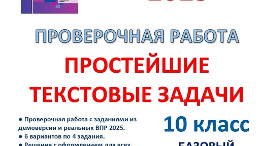 ❗Внимание❗⭐Новинка⭐🆗ВПР 10 класс Математика Проверочная работа "Простейшие текстовые задачи