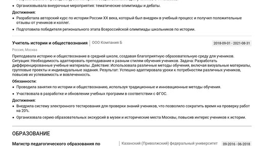 Пример резюме учителя истории и обществознания 2025 - Советы