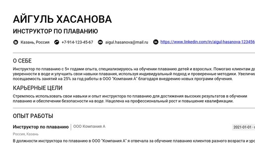 Пример резюме инструктора по плаванию 2025 - Как составить