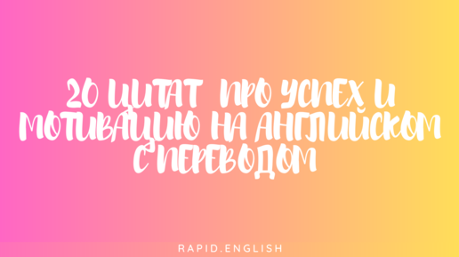 Всем привет! Сегодня я собрал для вас 20 замечательных мотивирующих цитат на английском от успешных людей для развития вашего словарного запаса. Ну что-ж, let's get started! 📌«The future belongs to those, who believe in beauty of their dreams». Eleonora Roosevelt «Будущее принадлежит тем, кто верит в свои мечты». Элеонора Рузвельт 📌«The way to get started is to quit talking and begin doing». Walt Disney «Чтобы начать, нужно перестать говорить и начать делать». Уолт Дисней 📌«Success doesn’t come to you...