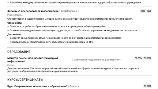 Пример резюме преподавателя информатики 2025 - готовые примеры