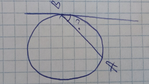 Приветствую Вас! Хотелось бы сегодня поговорить об одной полезной малоизвестной теореме геометрии, которая решает многие задачи, избегая длительных решений. Она касается окружностей и дуг. Звучит она так: Угол между хордой и касательной равен половине градусной мере дуги, заключенной между ними. К примеру, такая задача: Имеем такой чертеж: Здесь, конечно, можно сделать дополнительные построения: провести касательную к точке А, соединить А и В с центром окружности. Далее воспользоваться парой теорем...