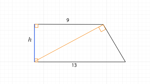 10. ★☆☆ Основания прямоугольной трапеции равны 9 и 13, а одна её диагональ перпендикулярна боковой стороне. Найдите высоту трапеции