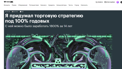 Недавно я наткнулся на статью в Тинькофф-журнале с очень "кричащим" заголовком: "Я придумал торговую стратегию под 100% годовых". Естественно мне стало любопытно что же там за стратегия, если даже редакция Т-Ж пропустила статью в эфир. Я обычно всегда настроен скептически ко всем супер-пупер выгодным предложениям, но иногда просто интересно разобраться - где же подвох? Разберемся что же предлагает автор данной статьи Артем. Меня зовут Артем. Меня не устраивает доходность консервативных инструментов, и я создал свою торговую стратегию...