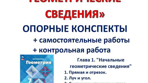 📆На 1-6 учебных неделях ученики 7 класса на уроках геометрии изучают тему “Начальные геометрические сведения" (12 ч) Уроки 1-12. По этой теме у меня есть материалы: ⭐Опорные конспекты (теория) на весь год: digital.wildberries.ru/offer/150053 ⭐Контрольная работа «Начальные геометрические сведения» digital...