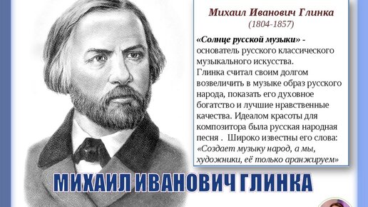 Предлагаю вашему вниманию викторину по оперному творчеству композитора. 10 вопросов с одним вариантом ответов. Удачи в прохождении! В конце можно проверить ответы и посмотреть верные. Плейлист с ответами, слушайте и наслаждайтесь! Михаил Иванович Глинка (1804-1857) - известный русский композитор, реформатор русской национальной оперы...