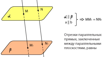 Привет. Ранее мы говорили о параллельности прямых на плоскости и свойствах таких прямых. Сегодня предлагаю продолжить и рассмотреть случай пространства. Начнем с плоскостей. В этом случае у нас то же самое, то есть две плоскости параллельны, если они не имеют общих точек (не пересекаются). Вообще, плоскости параллельны друг другу, если две пересекающиеся прямые, лежащие в одной плоскости, соответственно параллельны двум пересекающимся прямым, лежащим в другой плоскости. Для определения параллельности...