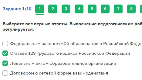 Полное название теста: "Нормативное правовое обеспечение наставничества педагогических работников в системах общего, среднего специального и дополнительного образования" Тестирование состоит из 10 заданий, каждый верный ответ оценивается в 1 балл. Тестирование пройдено успешно, если вы набрали 6 баллов и более. Выберите все верные ответы. Выполнение педагогическим работником функций наставничества в образовательной организации регулируется: Выберите все верные ответы. В каких документах образовательной...