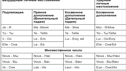 Личные местоимения во французском языке: таблица и примеры